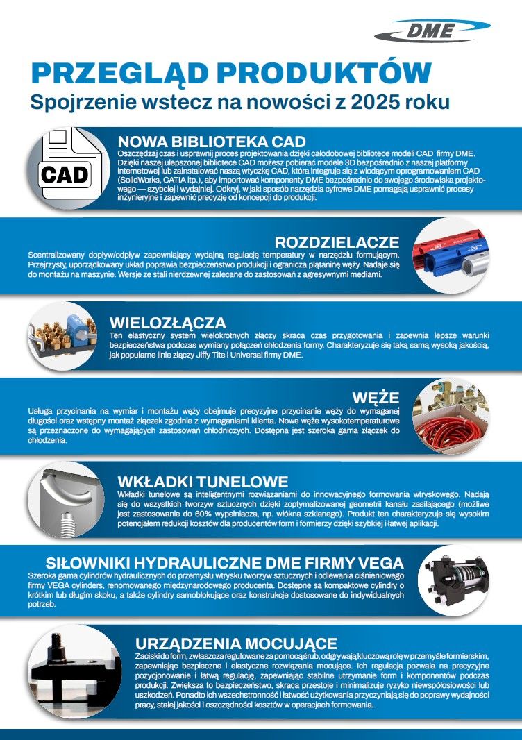 Dowiedz się więcej o naszych produktach i usługach. Każdego miesiąca organizujemy kilka webinariów na różne tematy. Znajdź odpowiednie rozwiązanie dla swojej produkcji lub dowiedz się, jak poradzić sobie z trudnościami podczas procesów formowania i konserwacji.